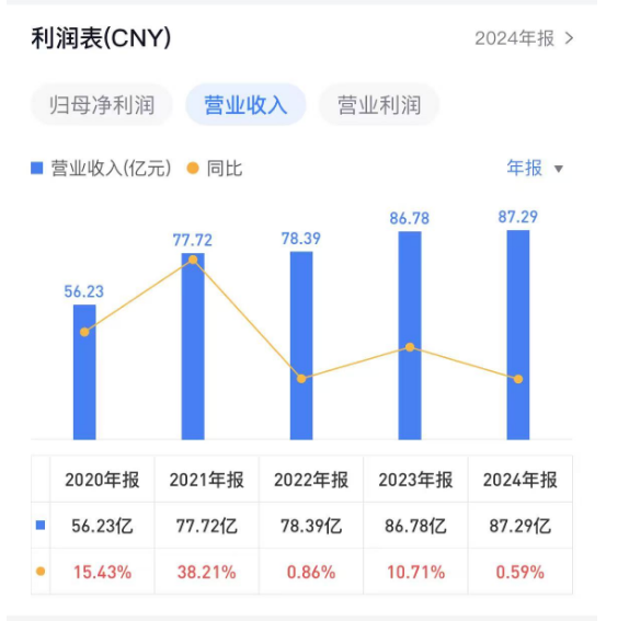 2024年,喜临门营业收入87.29亿元,同比增长0.59%;归属于上市公司股东的净利润3.22亿元。2024年营收为近五年新高。